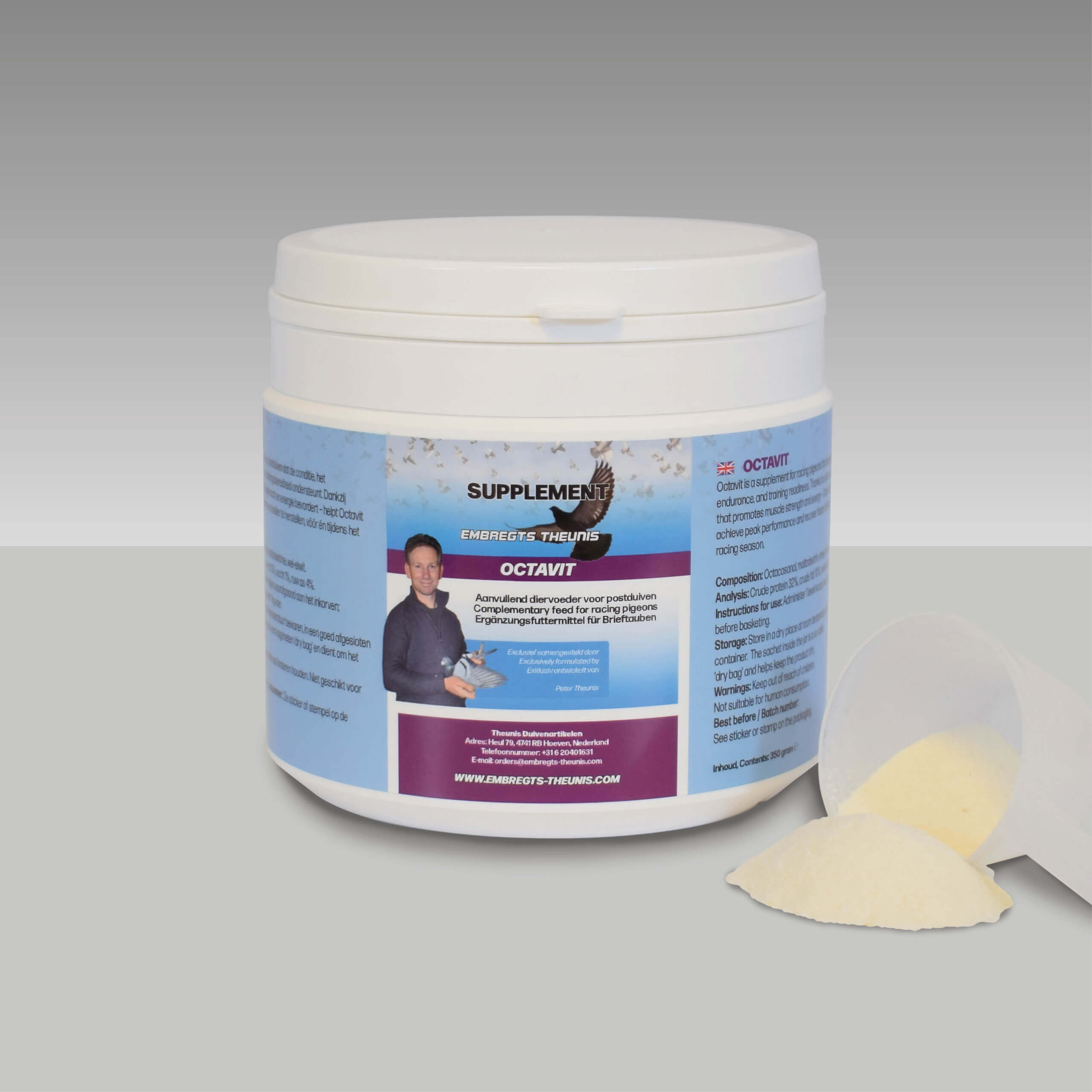 De formule bevat octacosanol, een natuurlijke stof die bekendstaat om het bevorderen van spierkracht, zuurstofopname en energie. Hierdoor helpt Octavit duiven om constanter te presteren, sneller te herstellen en met meer bereidheid te trainen, zowel in de voorbereiding als tijdens het vliegseizoen.